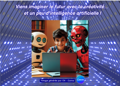 Les enfants apprennent à utiliser l’IA et imaginent ensemble une histoire. Ils créent  des images avec l’intelligence artificielle en décrivant ce qu’on imagine (les “prompts”).