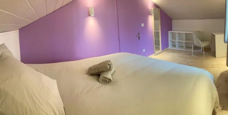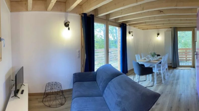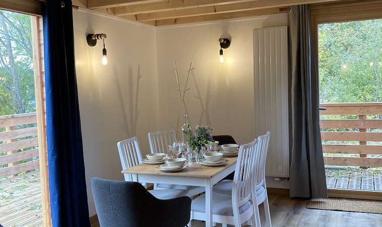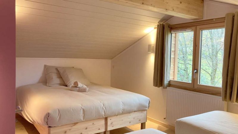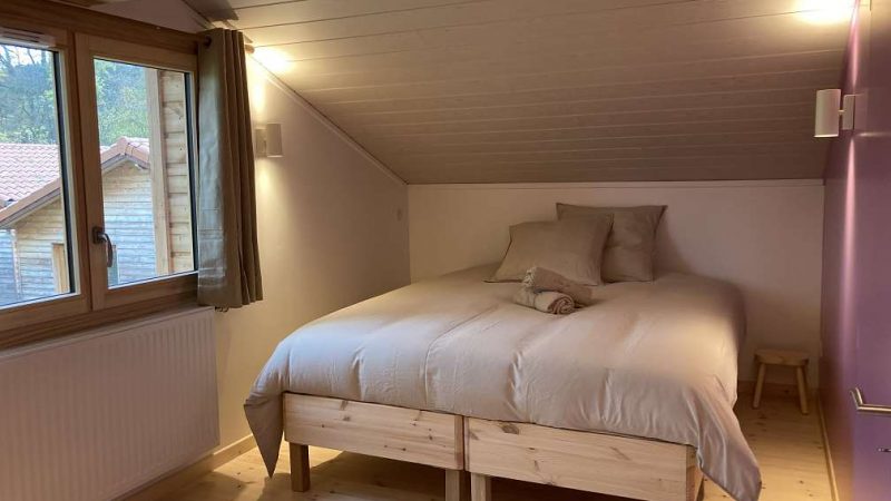 Cette douillette cabane sur pilotis se situe dans un lieu privilégié en pleine nature, idéal pour se détendre et se ressourcer. Emplacement de choix pour les amoureux de la nature et des activités sportives, à proximité : nombreux sentiers de promenade à pied, à vélo, à cheval même en raquette ou en ski de fond l'hiver ! L'hébergement entièrement neuf est un chalet en bois confortablement aménagé et équipé. Vous profiterez des beaux extérieurs communs du domaine, environ 2900m² : un jardin arboré et fleuri, un labyrinthe en permaculture, des jeux pour enfants (trampoline, toboggan, cabanes...), et une jolie terrasse intimiste & privative de 20m². L'accès à l'espace bien-être, véritable bain nordique et sauna cosmic, se fait indépendamment et n'est pas compris dans le prix du gîte. Pour y avoir accès merci de souscrire au forfait supplémentaire de 25€/h et par personne. Chalet en bois mansardé de 43m², en rez-de-chaussée & étage. Celui-ci s'ouvre sur la coquette pièce à vivre composée d'une cuisine intégrée et équipée ouverte sur l'espace repas et détente. Vous apprécierez l'accès direct à la terrasse avec mobilier de jardin pour manger à l'extérieur et profiter de la nature environnante. A ce niveau, la salle d'eau (douche italienne & vasque) et WC indépendants sont aménagés. L'étage entièrement mansardé est composé de deux coquettes chambres, l'espace est fonctionnel et la literie de grand confort est modulable : une chambre double avec 1 lit double 160x200 ou 2 lits simples 80x200 et une chambre quadruple avec 2 lits doubles 160x200 ou 4 lits simples 80x200 à votre convenance. Pour rendre votre séjour encore plus agréable, les charges et le chauffage sont inclus, les lits sont faits à votre arrivée et le linge de toilette est fournis.