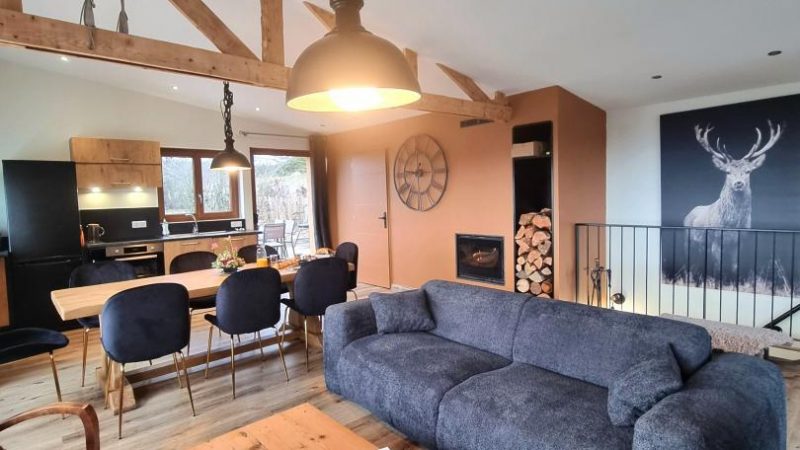 Découvrez ce gîte confortable de 90 m², idéal pour 6/8 personnes. Au rez-de-chaussée, trois chambres avec lits doubles (140x200) et une salle d'eau assurent un espace intime et agréable. En rez-de-jardin, profitez d'une pièce de vie chaleureuse et lumineuse avec cheminée, d'un canapé convertible, d'une cuisine équipée et d'une seconde salle d'eau avec WC. Son jardin clos de 1 500 m² et sa terrasse de 30 m² sont parfaits pour savourer un petit-déjeuner au soleil, un apéritif face au panorama ou une partie de pétanque. Pour un séjour en toute sérénité, les charges sont incluses et les lits faits à votre arrivée. Alliant harmonieusement pierre et bois, ce gîte dégage une atmosphère chaleureuse et apaisante, parfaite pour une parenthèse hors du temps. Après une journée en plein air, détendez-vous au coin du feu et savourez la sérénité des lieux. Idéalement situé au Bessat, dans la Loire, il offre un accès direct au Domaine Nordique, un véritable paradis pour les amateurs de ski de fond, de raquettes et de randonnées. À seulement 500 m, le village met à votre disposition commerces et services pour un séjour tout confort. Lorsque les beaux jours reviennent, partez à la découverte de 850 hectares de forêt à travers des sentiers balisés, propices à la marche nordique, au VTT ou encore à l'équitation. Une escapade nature inoubliable vous attend !
